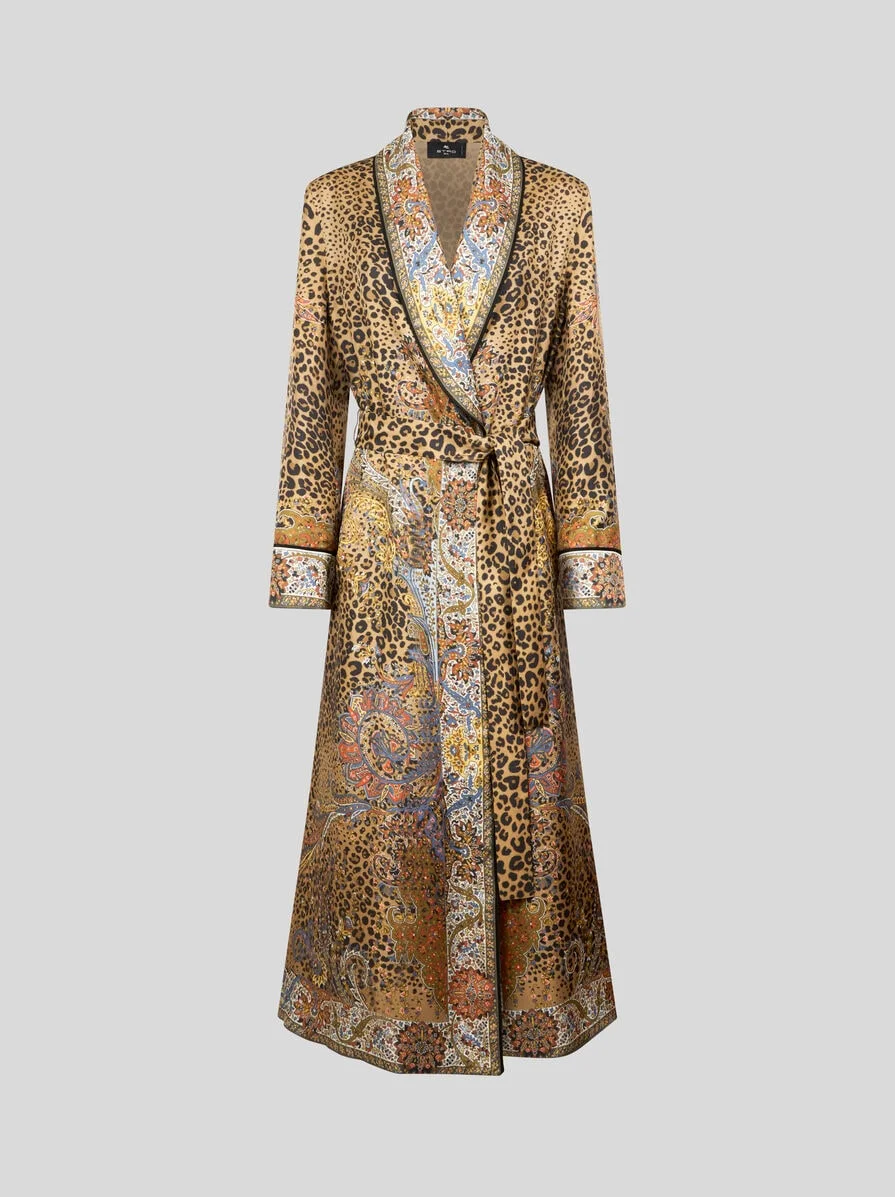 SILK ROBE COAT WITH PAISLEY AND ANIMAL MOTIF