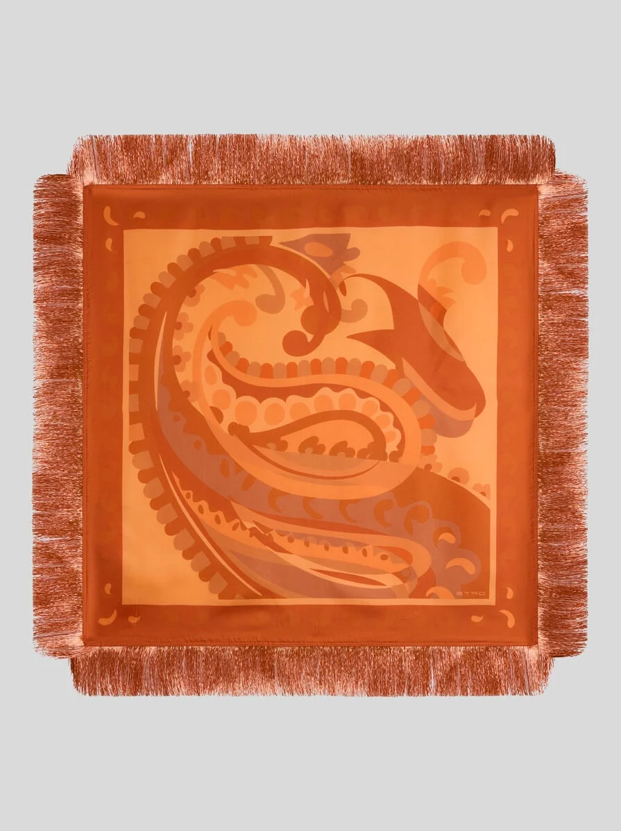 SILK SCARF WITH FRINGING AND PAISLEY MOTIF