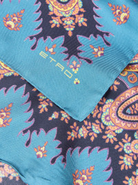 Pure silk scarf with distinctive, concentric, placed print with Paisley and floral detailing. This accessory is complete with an ETRO logo in the corner. • Size: 27.6 x 27.6 inches (70 x 70 cm) • Made in Italy PRODUCT DETAILS • 100% silk