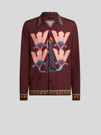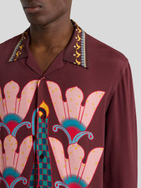 Pure silk shirt with distinctive, placed floral motif designed by artist Maria Jeon and finished with a contrasting abstract pattern on the collar, cuffs and hem. The item was presented at the Autumn-Winter 25 Runway Show. • Regular fit • Cuban collar • Button closure • Long sleeves • Working cuffs • Made in Italy • The model is 6' 1" (186 cm) tall and wears a size M PRODUCT DETAILS • 100% silk