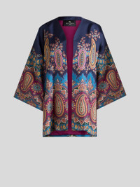 Short pure silk twill kesa robe with distinctive, placed floral Paisley print. • Regular fit • Kimono sleeves • Made in Italy PRODUCT DETAILS • 100% silk • Lining: 100% viscose