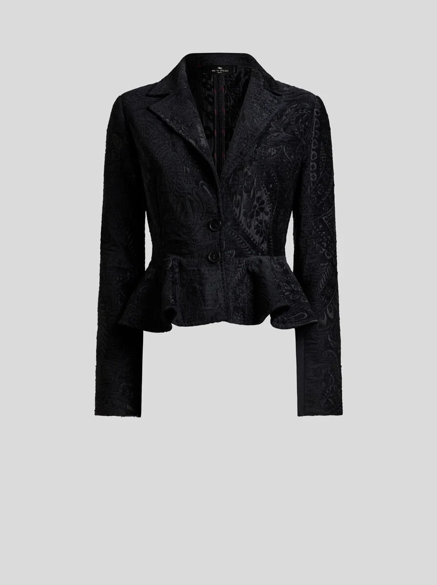 SINGLE-BREASTED CHENILLE JACQUARD JACKET WITH FLORAL PAISLEY MOTIF