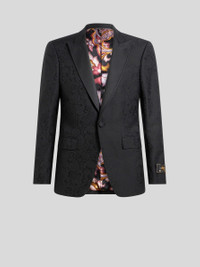 Single-breasted blazer with refined floral leafy jacquard motif replicated, in a contrasting version, on the inner lining. This model is enhanced by its contrasting collar. • Roma regular fit • Peak lapels • Single-breasted button closure • Two flap pockets at the front and welt breast pocket • Working cuffs • Label with Etro logo and Pegaso symbol on the cuff • Made in Italy • The model is 6' 1½" (187 cm) tall and wears a size 48 PRODUCT DETAILS • Main fabric: 78% silk, 22% polyester • Neck: 53% cotton, 47% wool • Lining: 100% viscose