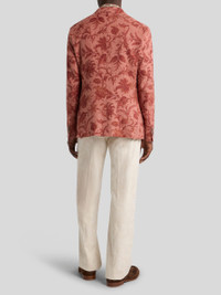 Tailored jacket in wool-, silk- and linen-blend mouline with characteristic rustic effect and elegant all-over floral motif. This garment features a chest pocket and two pockets with flap at the bottom, and is complete with a single-breasted two-button closure. • Regular fit • Single-breasted two-button closure • Welt breast pocket • Front pockets with flap • Made in Italy • The model is 6' 1" (186 cm) tall and wears a size 48 PRODUCT DETAILS • Exterior: 55% wool, 23% silk, 22% linen • Bodice lining: 52% viscose, 48% acetate • Sleeve lining: 100% viscose