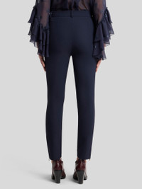 Slim-fit trousers in plain-coloured two-way stretch fabric. These feature two zipped front welt pockets which are finished with a button with a raised Pegaso symbol at the closure. • Slim fit • Concealed zip and Pegaso button closure • Zipped front welt pockets • Made in Italy • The model is 5' 9½" (177 cm) tall and wears a size 40 PRODUCT DETAILS • 89% polyamide, 11% elastane