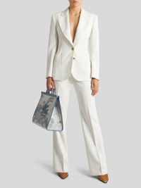 Straight-leg slub fabric trousers with pressed creases. • Regular fit • Regular-rise waist • Hook and zip closure • Side pockets • Rear button-through welt pockets • The model is 70.07" (178 cm) tall and wears a size 40 (IT) • Made in Italy PRODUCT DETAILS • 86% viscose, 14% polyester