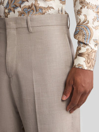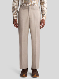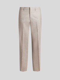 Straight-leg tailored trousers in a wool, silk and linen-blend slub fabric with a pressed crease. The label with ETRO lettering on the back of the waist complements the piece. • Loose fit • High waist • Fastened with concealed zip and button • Side slip pockets • One rear pocket with flap and button • One rear welt pocket • Made in Italy • The model is 6' 1½" (187 cm) tall and wears a size 48 PRODUCT DETAILS • 70% wool, 20% silk, 10% linen