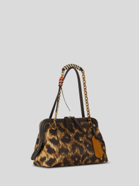 Small Doc bag in raffia with distinctive, refined animal-effect embroidery. This accessory features two mismatched handles: one in plain-coloured leather and a chain one with woven two-tone leather detailing, which allow for shoulder carry. The leather label with embossed Pegaso logo completes the design. • Dimensions (Width, Height, Depth): 10.2 x 6.7 x 3.9 inches (26 x 17 x 10 cm) • Two-way zip closure • Zipped internal slip pocket • Two handles • Made in Italy PRODUCT DETAILS • Exterior: 50% polyamide, 50% cotton • Details: calfskin • Embroidery: 100% polyester • Interior: 100% cotton