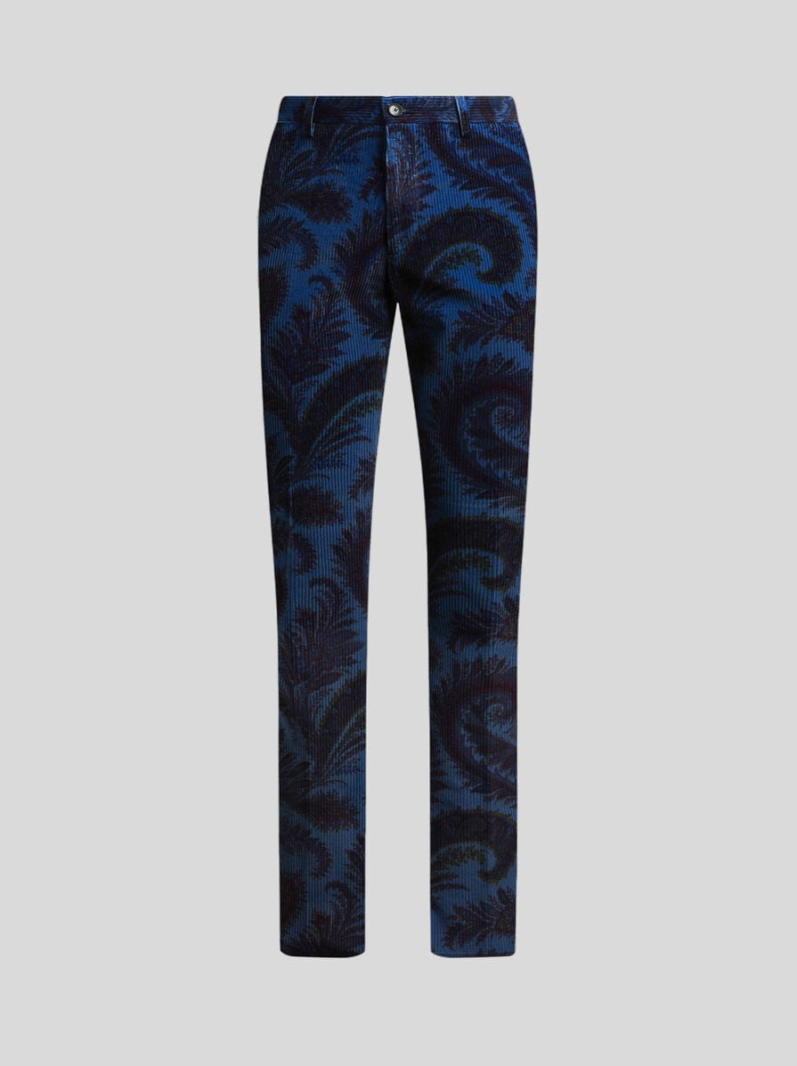 STRAIGHT-LEG RIBBED VELVET TROUSERS WITH FOLIAGE MOTIF