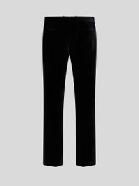 Straight-leg evening trousers with satin side band detail. The rear and side slip pockets complete the garment. • Slim fit • Welt side slip pockets • Rear welt pockets • Hidden closure • Belt loops • Side band detail down the leg • Made in Italy • The model is 6' 1½" (187 cm) tall and wears a size 48 PRODUCT DETAILS • 98% cotton, 2% elastane • Band: 78% silk, 22% polyester