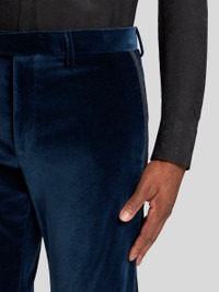 Straight-leg evening trousers with satin side band detail. The rear and side slip pockets complete the garment. • Slim fit • Welt side slip pockets • Rear welt pockets • Hidden closure • Belt loops • Side band detail down the leg • Made in Italy • The model is 6' 1½" (187 cm) tall and wears a size 48 PRODUCT DETAILS • 98% cotton, 2% elastane • Band: 78% silk, 22% polyester