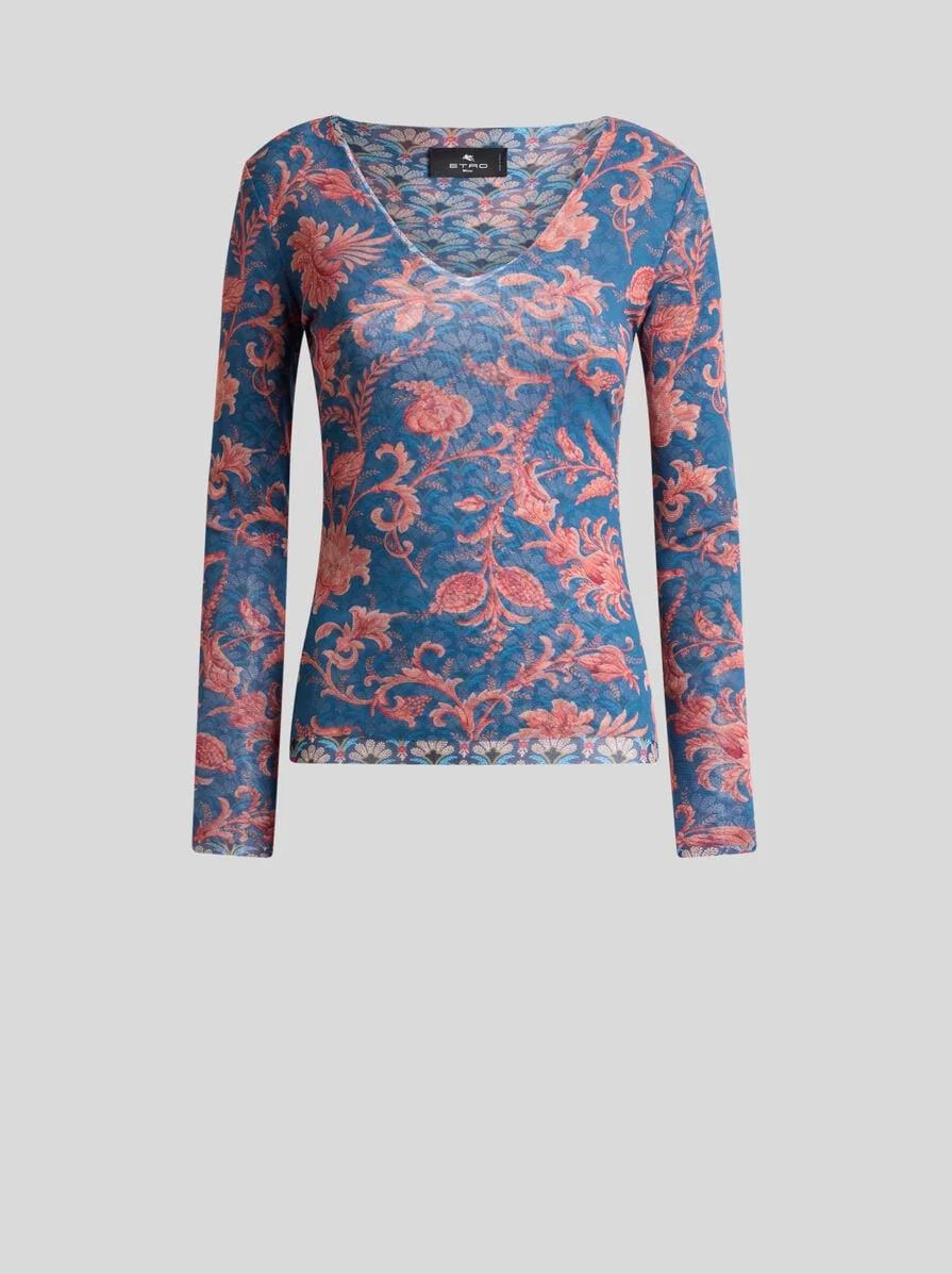 STRETCH TULLE SWEATER WITH FLORAL MOTIF