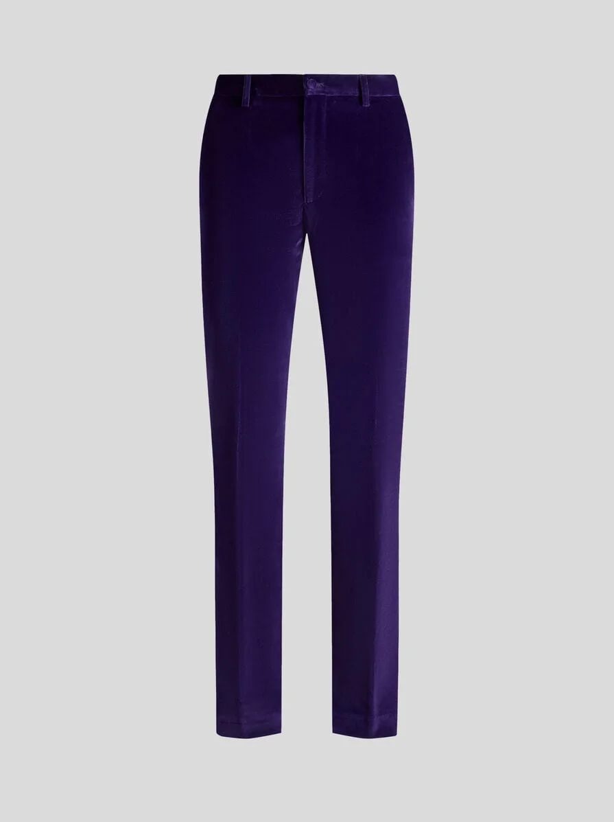Tailored trousers in soft, plain-coloured stretch cotton velvet. • Regular fit • Welt side slip pockets • Rear welt pockets • Concealed zip and button closure • Made in Italy • The model is 6' 1" (186 cm) tall and wears a size 48 PRODUCT DETAILS • 98% cotton, 2% elastane
