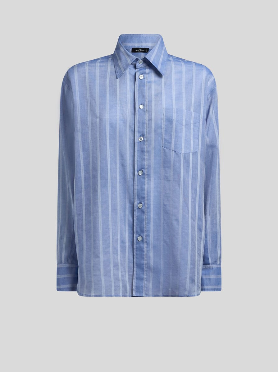 Classic-style shirt in cotton fabric with decorative striped pattern. This model features a rear silk twill insert with a floral- and geometric-patterned print. • Regular fit • Pointed collar • Long sleeves • One-button working cuffs • Breast patch pocket • Branded-button closure • Made in Italy • The model is 5' 9½" (177 cm) tall and wears a size 40 PRODUCT DETAILS • 100% cotton • Insert: 100% silk