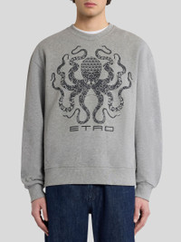 Crew-neck sweatshirt in pure cotton pique embellished with maxi print featuring an octopus and ETRO logo on the front. The ribbing at the neck, cuffs and hem complete the garment. • Regular fit • Crewneck • Long sleeves with dropped shoulder • Made in Italy • The model is 6' 1½" (187 cm) tall and wears a size M PRODUCT DETAILS • 100% cotton