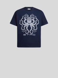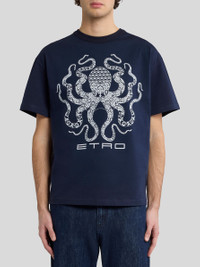 Pure cotton pique T-shirt with ribbed crewneck and maxi print featuring an octopus and ETRO logo on the front. • Regular fit • Crewneck • Short sleeves • Made in Italy • The model is 6' 1½" (187 cm) tall and wears a size M PRODUCT DETAILS • 100% cotton