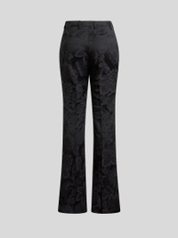 Flared trousers in glossy stretch jacquard fabric embellished with a tone-on-tone motif. • Slim fit • Regular-rise waist • Rear welt pockets • Hook and zip closure • Made in Italy • The model is 5' 9½" (177 cm) tall and wears a size 40 PRODUCT DETAILS • 52% cotton, 48% viscose