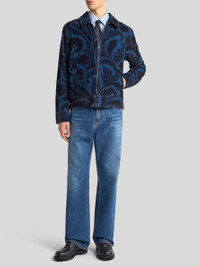 Pure cotton velvet bomber jacket. This model features an all-over foliage-style print. • Regular fit • Shirt collar • Zip closure • Side slip pockets • Made in Romania • The model is 6' 1½" (187 cm) tall and wears a size M PRODUCT DETAILS • 100% cotton • Lining: 52% viscose, 48% acetate