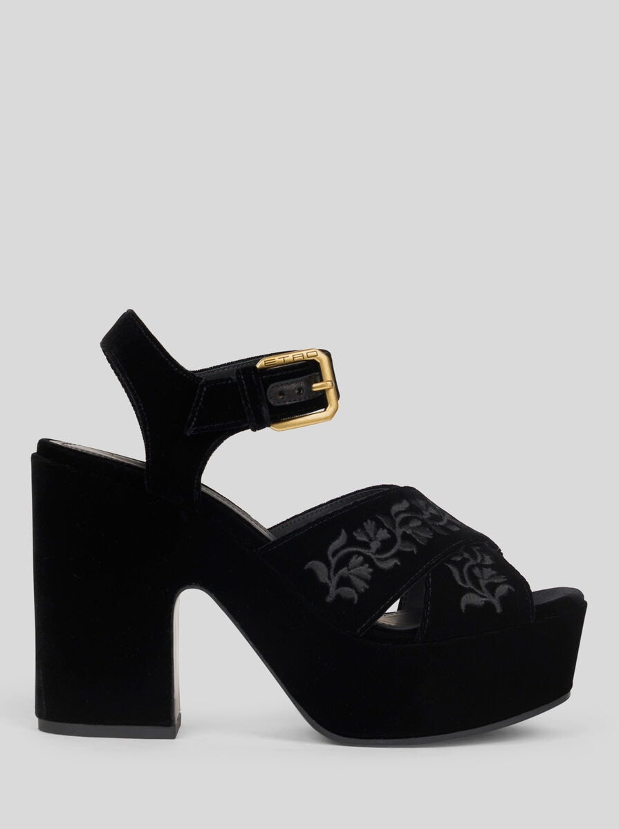 VELVET PLATFORM SANDALS WITH EMBROIDERY