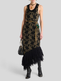 WOOL AND ALPACA JACQUARD MAXI DRESS WITH FRINGING