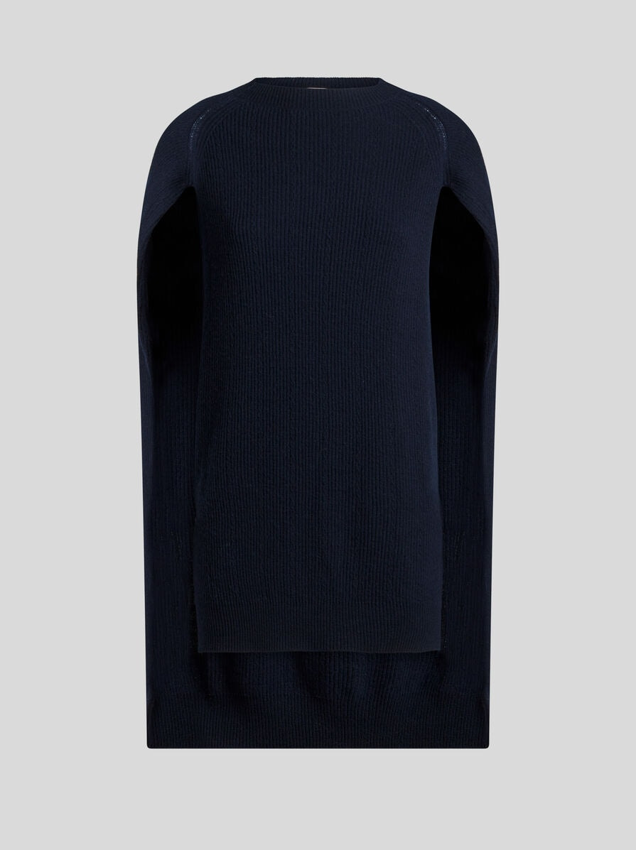 Ribbed knit cape top, in wool- and cashmere-blend fabric with cable detailing. • Loose fit • Crew neck • Made in Italy • The model is 5’10” (178 cm) tall and wears a size 40 (IT) PRODUCT DETAILS • 45% wool, 30% viscose, 25% cashmere