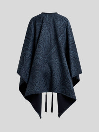 Cape in double-layered wool- and cashmere blend cloth with Paisley jacquard motif. It features a lace closure with two tassels at the bottom. • Lace fastening • Made in Italy PRODUCT DETAILS • 92% wool, 7% cashmere, 1% polyamide • Details: 83% polyurethane, 12% polyester, 5% viscose