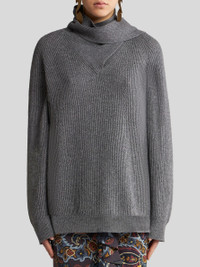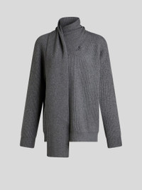 Wool- and cashmere-blend sweater with ribbing and cable detailing. This model features a scarf-adorned turtleneck. • Loose fit • Turtleneck with scarf • Long sleeves • Made in Italy • The model is 5’10” (178 cm) tall and wears a size 40 (IT) PRODUCT DETAILS • 45% wool, 30% viscose, 25% cashmere