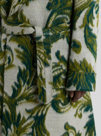 Long robe coat made from soft, brushed wool-blend fabric. Sporting a distinctive Paisley foliage jacquard motif, this model features shawl lapels and a convenient matching belt. The item was presented at the Autumn-Winter 25 Runway Show. • Comfort fit • Shawl lapels • Fastened with detachable belt • Patch pockets on the front • Made in Italy • The model is 6' 1" (186 cm) tall and wears a size 48 PRODUCT DETAILS • 80% wool, 20% polyamide • Lining: 52% viscose, 48% acetate