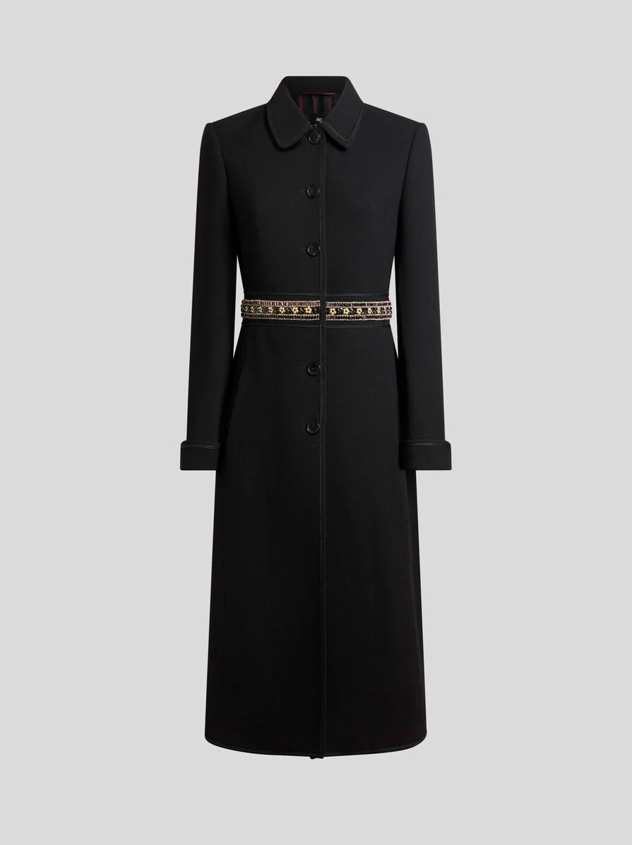 WOOL COAT WITH JEWEL EMBELLISHMENTS