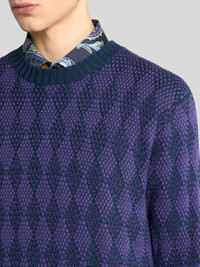 Pure wool jacquard crew-neck sweater. It features a two-tone diamond motif. • Regular fit • Crew neck • Ribbed edging • Made in Italy • The model is 6' 1½" (187 cm) tall and wears a size M PRODUCT DETAILS • 100% wool