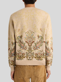 Crew-neck sweater in pique-stitched pure wool jacquard fabric. This garment features a distinctive placed floral motif. • Regular fit • Crew neck • Ribbed edging • Made in Italy • The model is 6' 1½" (187 cm) tall and wears a size M PRODUCT DETAILS • 100% wool