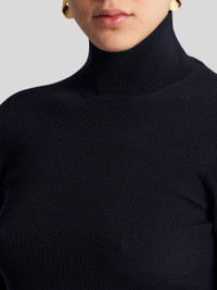 Wool turtleneck sweater, embellished with tone-on-tone embroidered Pegaso symbol and ETRO logo on the back. • Regular fit • Turtleneck • Long sleeves • Made in Italy • The model is 5’10” (178 cm) tall and wears a size 40 (IT) PRODUCT DETAILS • 100% wool