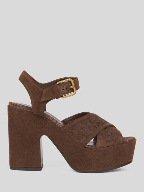SUEDE PLATFORM SANDALS WITH EMBROIDERY