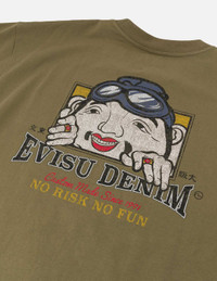 2ESHTM5TS7020RXCT This T-shirt features a vintage Godhead print as its theme, with the Godhead wearing sunglasses and appearing to peek out as if on an adventure. The slogan "NO RISK NO FUN" conveys a fearless attitude, while the front is adorned with logo embroidery and a Seagull print. - Relax fit - 100% Cotton - Adventure Godhead, slogan and Seagull print - Logo embroidery