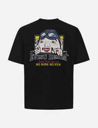 2ESHTM5TS7020RXCT This T-shirt features a vintage Godhead print as its theme, with the Godhead wearing sunglasses and appearing to peek out as if on an adventure. The slogan "NO RISK NO FUN" conveys a fearless attitude, while the front is adorned with logo embroidery and a Seagull print. - Relax fit - 100% Cotton - Adventure Godhead, slogan and Seagull print - Logo embroidery