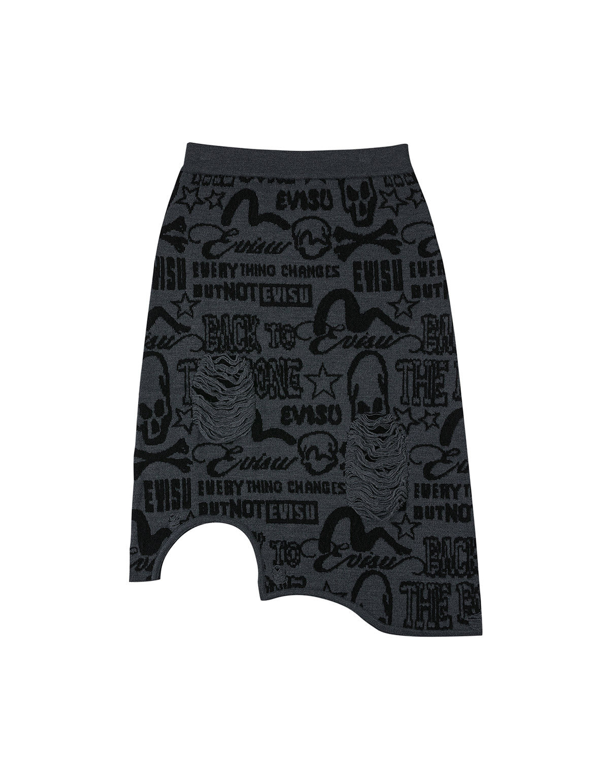 Allover EVISU Jacquard Fashion Fit Distressed Knitted Skirt