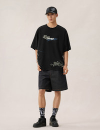 2ESHTM6TS1098LFCT A collage of graffiti‑style EVISU logos, sketches and slogans wraps around this tee, giving it a bold street‑art attitude from every angle. The relaxed fit leaves room for layering while keeping the graphic placements balanced across the front and back. - Loose fit - 100% Cotton - Allover graffiti‑inspired EVISU graphics - Front EVISU logo print