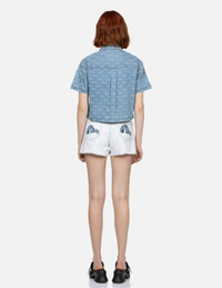 ALLOVER LOGO JACQUARD AND RHINESTONE SEAGULL FASHION FIT DENIM SHIRT