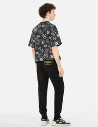 2ESHTM5TS1103LFCT This T-shirt features a vibrant array of logos, Kamons, Seagull, the Wheel of Wisdom, and the brand slogan printed all over the front and back, showcasing a unique personality and fashionable style, as if telling the EVISU's story. Whether paired with jeans or casual pants, it is an ideal choice for everyday wear. - Loose fit - 100% Cotton - Allover multi-logo print