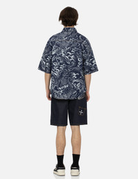 ALLOVER SEAGULL AND CARP EXTRACTED PRINT LOOSE FIT DENIM SHIRT