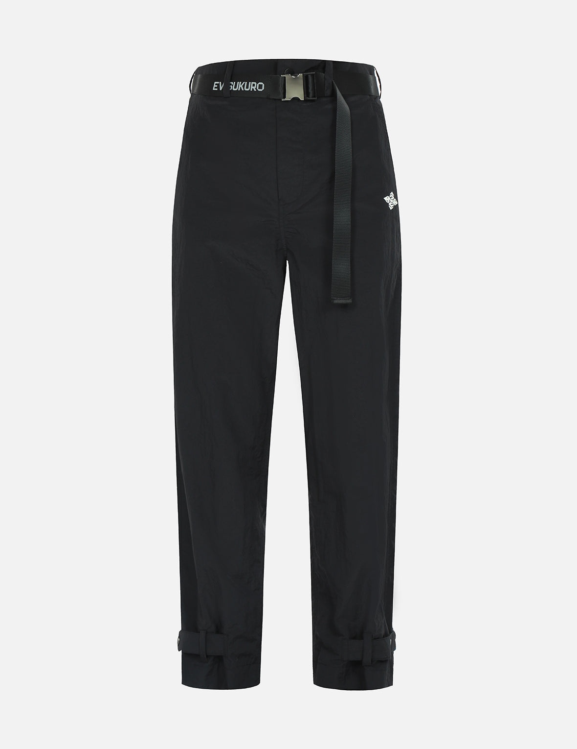 2ESGNW3PT290HWNY Fitting high on the waist and with a relaxed tapered fit, these pants by EVISUKURO will help you create a leg-lengthening look. They also feature belted cuffs as well as glossy seagull print for extra coolness. - 100% Nylon - Relaxed fit, high waist - Kamon and glossy seagull prints - Logo printed webbing belt