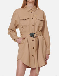 2EAGNW1DR269LFWX Accentuating the feminine curves with a belted design, this shirt dress helps you put together an urban chic outfit effortlessly. You can even pair it with boots or heels to switch between cool and elegant looks. - 40% Wool, 30% Nylon, 30% Rayon - Loose fit - Detachable belt - Logo, Kamon and seagull embroideries - 2 chest pockets
