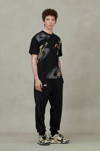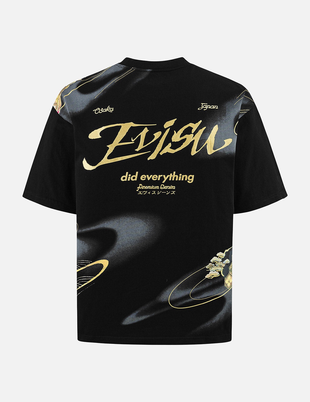 Brocade Kamon and Allover Print Relax Fit T-Shirt