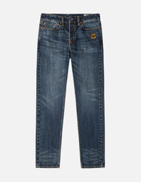 2EAHTM5JE105417DN This stylish denim jeans features a premium wash process, delivering a unique faded effect that adds a vintage flair. The standout design highlight is the intricately brocade patch pocket on the back, featuring exquisite patterns paired with gold seagull and EVISU logo embroidery, showcasing a distinctive premium texture. The carrot-fit perfectly contours to the leg line, accentuating a slender silhouette, making it ideal for everyday wear or trendy outfits. - 2017 Carrot fit - 100% Cotton - Brocade patch pocket - Seagull and logo embroidery - Button fly, 5 pockets - EVISU Japanese Kamon tag - Godhead leather patch