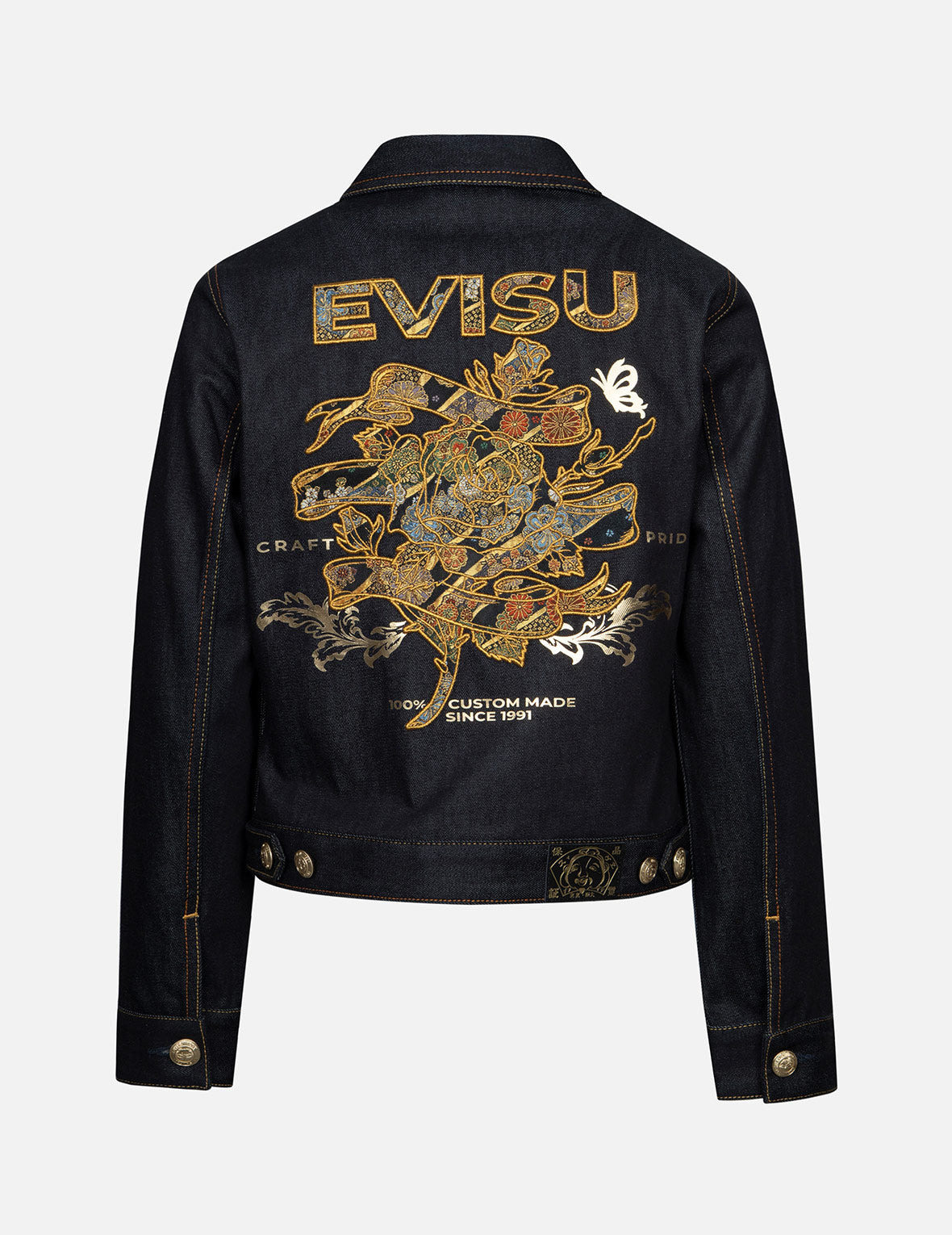 BROCADE ROSE AND LOGO EMBROIDERY REGULAR FIT DENIM JACKET