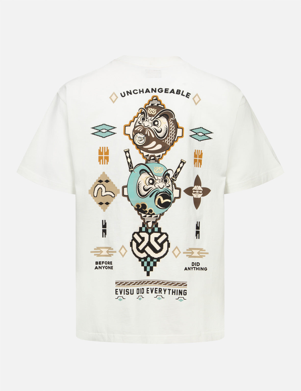 2EAHTM4TS1092RXCT Centered around pixel art, this T-shirt features patterns of Seagulls, Darumas, logo, and more in the style of the Chimayo Tapestry, creating a rich and vibrant design. These patterns present a unique visual style, blending traditional elements with modern design, showcasing a distinctive and fashionable charm. FIT & STYLING: RELAX CARE MACHINE WASH COLD INSIDE OUT DELICATE CYCLE DO NOT BLEACH HANG DRY ONLY COOL IRON ON REVERSE SIDE IF NEEDED STEAM IRONING MAY CAUSE IRREVERSIBLE DAMAGE DO NOT DRY CLEAN DO NOT IRON ON PRINT