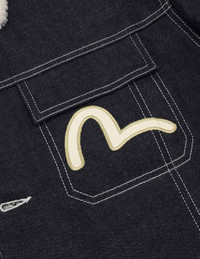 2EAHTM4DJ1008RXDN This denim jacket features contract stitching design with Seagull embroidery on the chest pockets and a embroidery-style inserted Daicock on the back. Lined with sheepskin, it incorporates various embroideries and prints inspired by Native American culture in its details, showcasing meticulous craftsmanship. It excels in both design and insulation. - Relax fit - 100% Cotton - Seagull embroidery and inserted Daicock - Contract stitching design - 4 pockets, long sleeves, button fastening