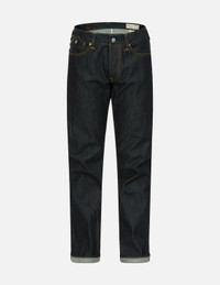 2EAHTM4JE701208DP The back of EVISU jeans features a prominent black and gold embroidered Daicock design, adorned with elegant crane motifs, showcasing the essence of Japanese aesthetics. The luxurious pattern exhibits rich layers and delicate coloration, adding a touch of grandeur and sophistication to the garment. - 2008 Regular Straight Fit - 99% Cotton, 1% Spandex - Crane embrodiery brocade Daicock - 12 oz denim - Button fly, 5 pockets - Godhead leather patch