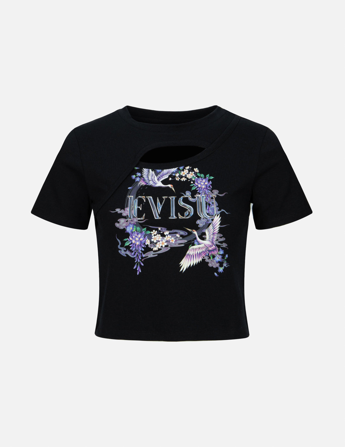 CRANES AND WISTERIA PRINT FASHION FIT CUT-OUT T-SHIRT