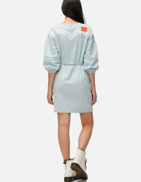 2ESHTW1DR191DN Channeling elegance in denim, this crew neck dress comes with puff sleeves and elasticated waist to enhance femininity, while the back panel features a Daicock insert with an orange Godhead leather patch for a trendy vibe. - Fashion fit - Daicock insert, seagull embroidery - Elasticated waist and cuffs - Godhead leather patch - 100% Cotton